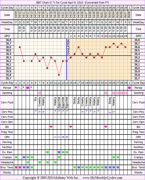 Disclaimer: You are viewing a chart shared by a MyMonthlyCycles member. All data on this chart, including ovulation date, if shown, has been entered by this member. MyMonthlyCycles has not interpreted this chart.