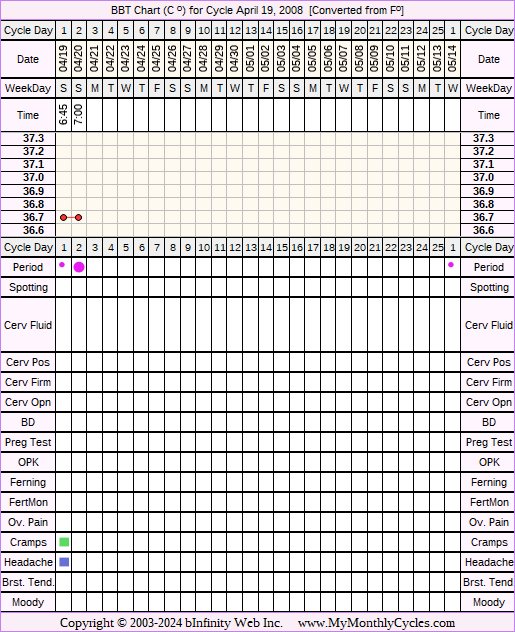 Disclaimer: You are viewing a chart shared by a MyMonthlyCycles member. All data on this chart, including ovulation date, if shown, has been entered by this member. MyMonthlyCycles has not interpreted this chart.