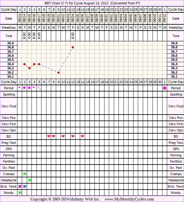 Disclaimer: You are viewing a chart shared by a MyMonthlyCycles member. All data on this chart, including ovulation date, if shown, has been entered by this member. MyMonthlyCycles has not interpreted this chart.