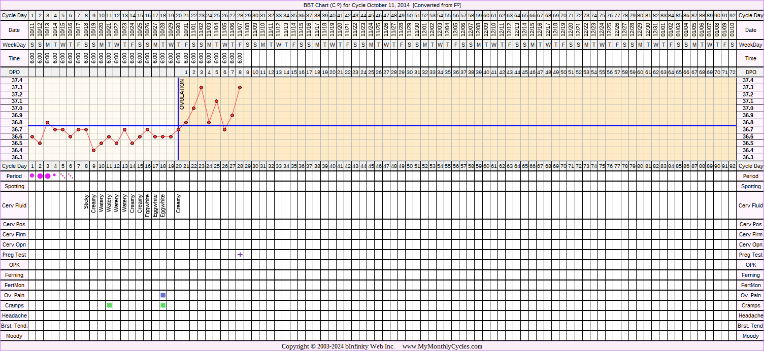 Disclaimer: You are viewing a chart shared by a MyMonthlyCycles member. All data on this chart, including ovulation date, if shown, has been entered by this member. MyMonthlyCycles has not interpreted this chart.