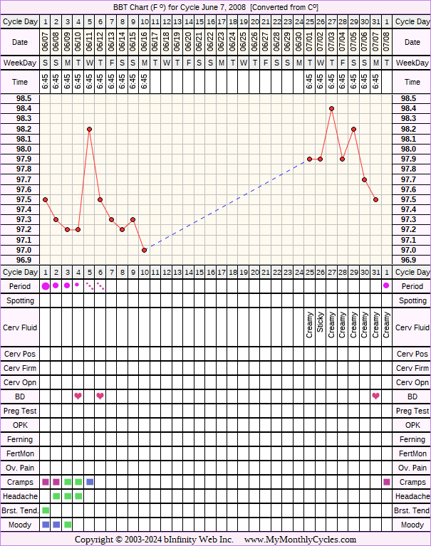 Disclaimer: You are viewing a chart shared by a MyMonthlyCycles member. All data on this chart, including ovulation date, if shown, has been entered by this member. MyMonthlyCycles has not interpreted this chart.