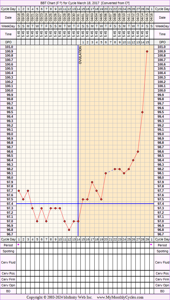 Disclaimer: You are viewing a chart shared by a MyMonthlyCycles member. All data on this chart, including ovulation date, if shown, has been entered by this member. MyMonthlyCycles has not interpreted this chart.