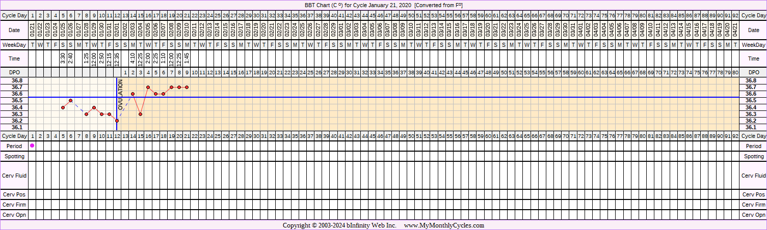 Disclaimer: You are viewing a chart shared by a MyMonthlyCycles member. All data on this chart, including ovulation date, if shown, has been entered by this member. MyMonthlyCycles has not interpreted this chart.