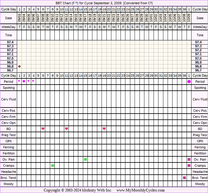 Member's BBT Chart for Sep 3, 2009
