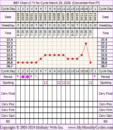Disclaimer: You are viewing a chart shared by a MyMonthlyCycles member. All data on this chart, including ovulation date, if shown, has been entered by this member. MyMonthlyCycles has not interpreted this chart.