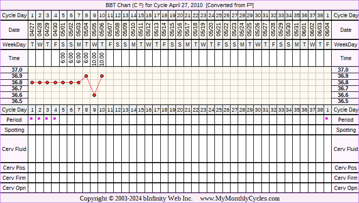 Disclaimer: You are viewing a chart shared by a MyMonthlyCycles member. All data on this chart, including ovulation date, if shown, has been entered by this member. MyMonthlyCycles has not interpreted this chart.
