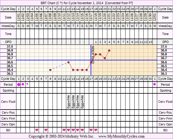 Disclaimer: You are viewing a chart shared by a MyMonthlyCycles member. All data on this chart, including ovulation date, if shown, has been entered by this member. MyMonthlyCycles has not interpreted this chart.