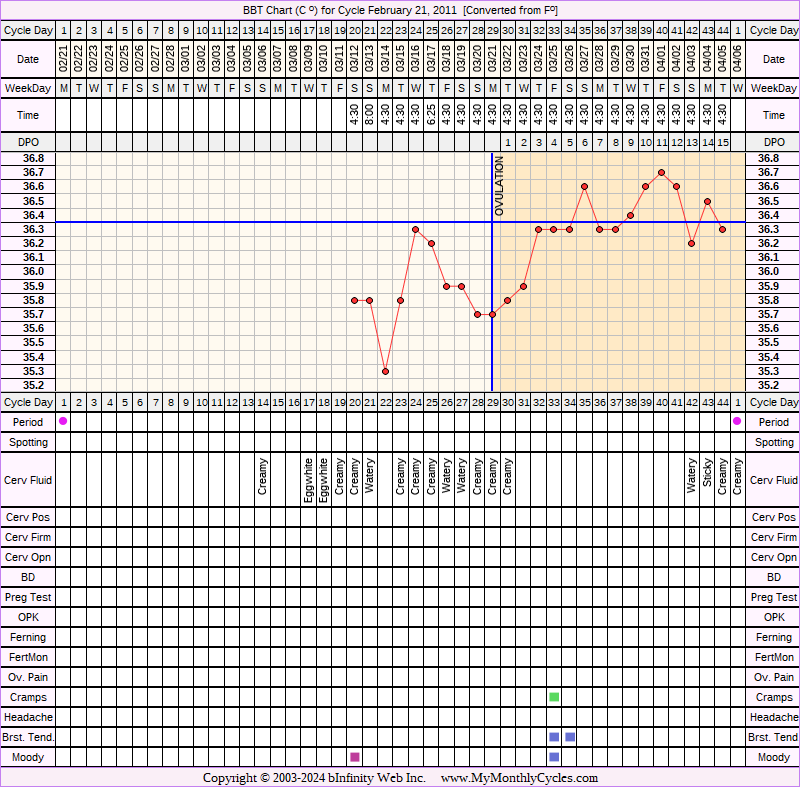 Disclaimer: You are viewing a chart shared by a MyMonthlyCycles member. All data on this chart, including ovulation date, if shown, has been entered by this member. MyMonthlyCycles has not interpreted this chart.