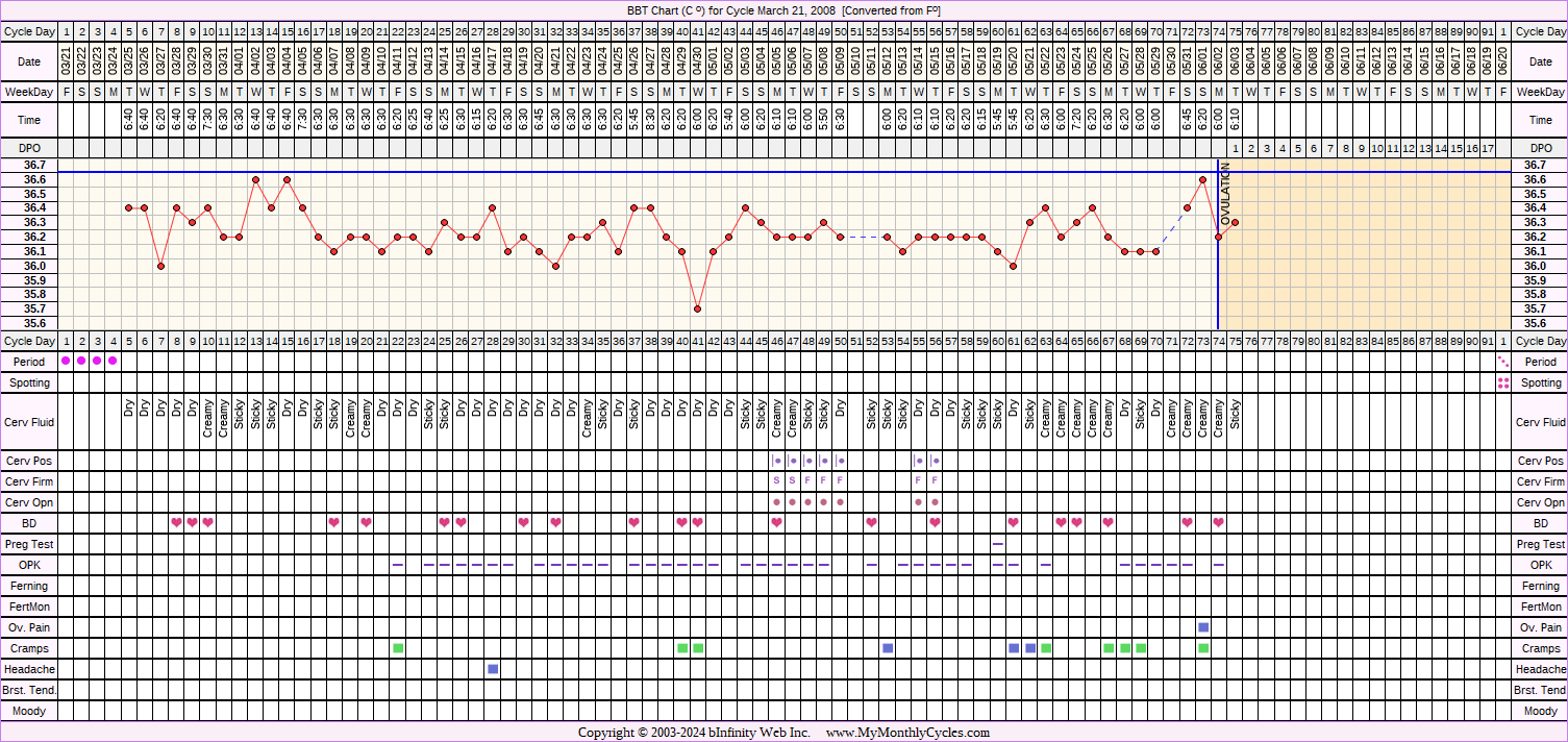 Disclaimer: You are viewing a chart shared by a MyMonthlyCycles member. All data on this chart, including ovulation date, if shown, has been entered by this member. MyMonthlyCycles has not interpreted this chart.