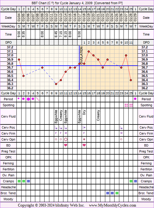 Member's BBT Chart for Jan 4, 2009