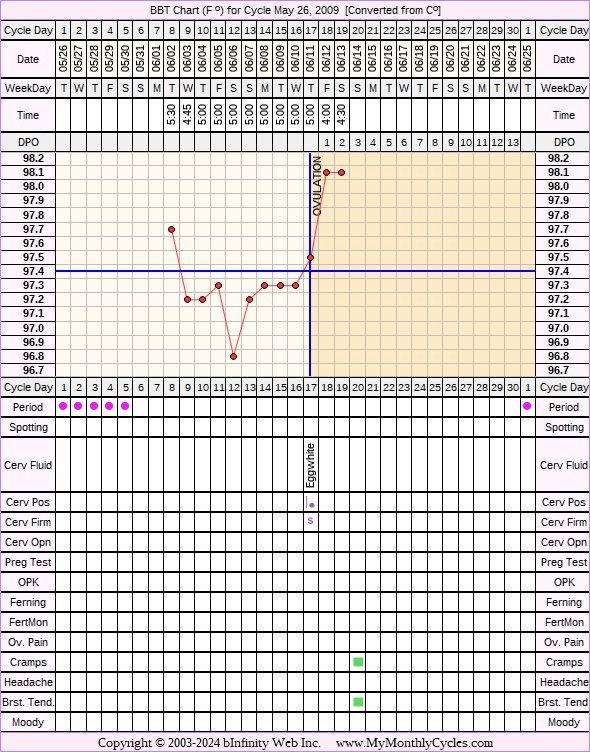 Disclaimer: You are viewing a chart shared by a MyMonthlyCycles member. All data on this chart, including ovulation date, if shown, has been entered by this member. MyMonthlyCycles has not interpreted this chart.