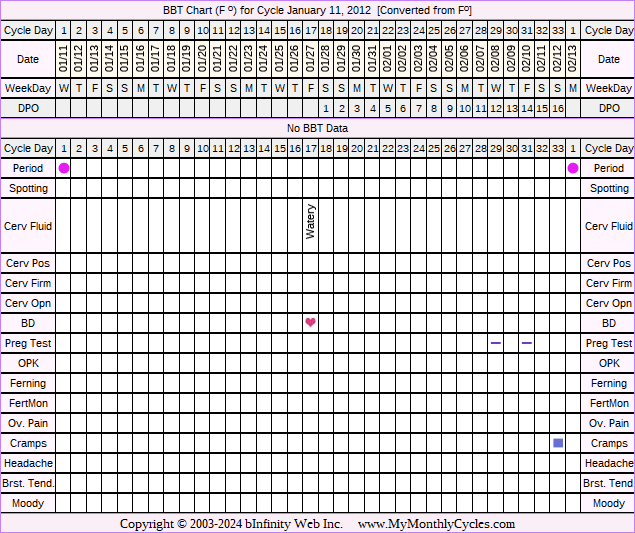 Disclaimer: You are viewing a chart shared by a MyMonthlyCycles member. All data on this chart, including ovulation date, if shown, has been entered by this member. MyMonthlyCycles has not interpreted this chart.