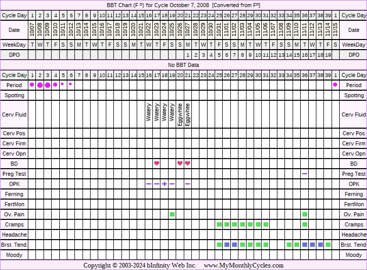 Disclaimer: You are viewing a chart shared by a MyMonthlyCycles member. All data on this chart, including ovulation date, if shown, has been entered by this member. MyMonthlyCycles has not interpreted this chart.