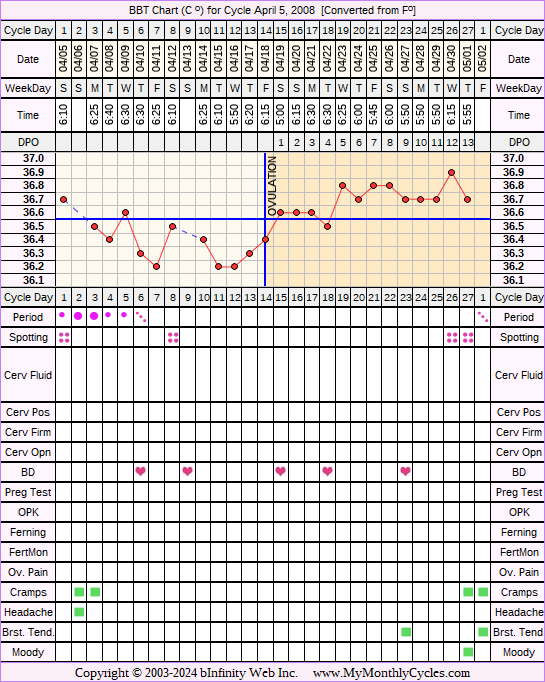 Disclaimer: You are viewing a chart shared by a MyMonthlyCycles member. All data on this chart, including ovulation date, if shown, has been entered by this member. MyMonthlyCycles has not interpreted this chart.