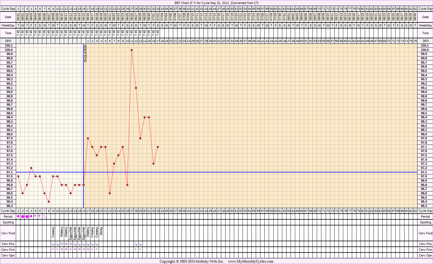 Disclaimer: You are viewing a chart shared by a MyMonthlyCycles member. All data on this chart, including ovulation date, if shown, has been entered by this member. MyMonthlyCycles has not interpreted this chart.