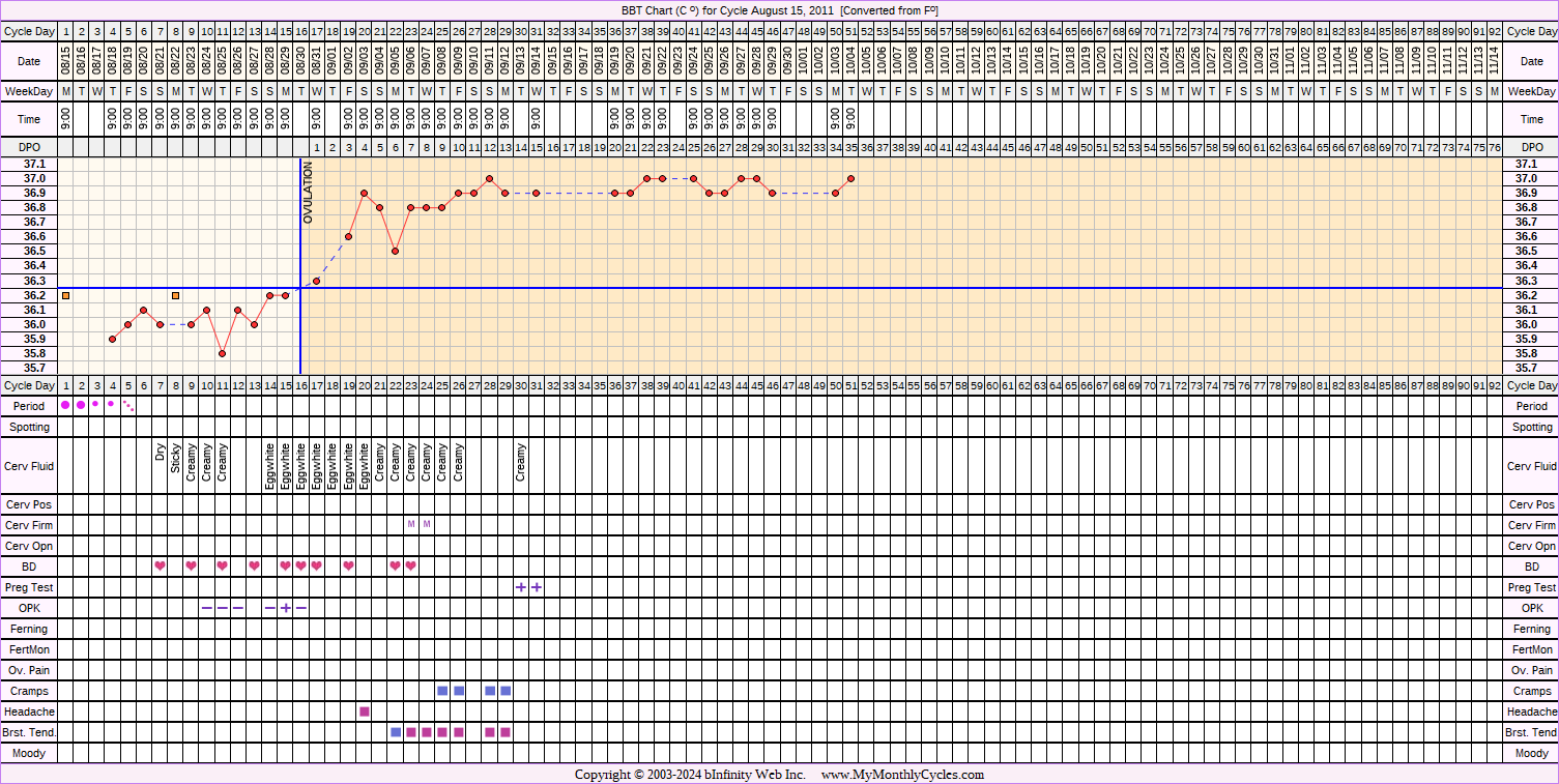 Disclaimer: You are viewing a chart shared by a MyMonthlyCycles member. All data on this chart, including ovulation date, if shown, has been entered by this member. MyMonthlyCycles has not interpreted this chart.