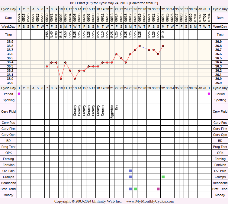 Disclaimer: You are viewing a chart shared by a MyMonthlyCycles member. All data on this chart, including ovulation date, if shown, has been entered by this member. MyMonthlyCycles has not interpreted this chart.