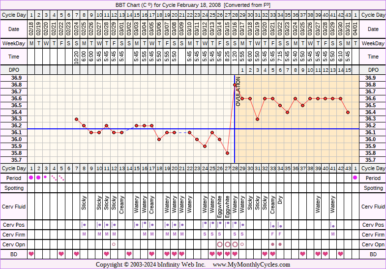 Member's BBT Chart for Feb 18, 2008