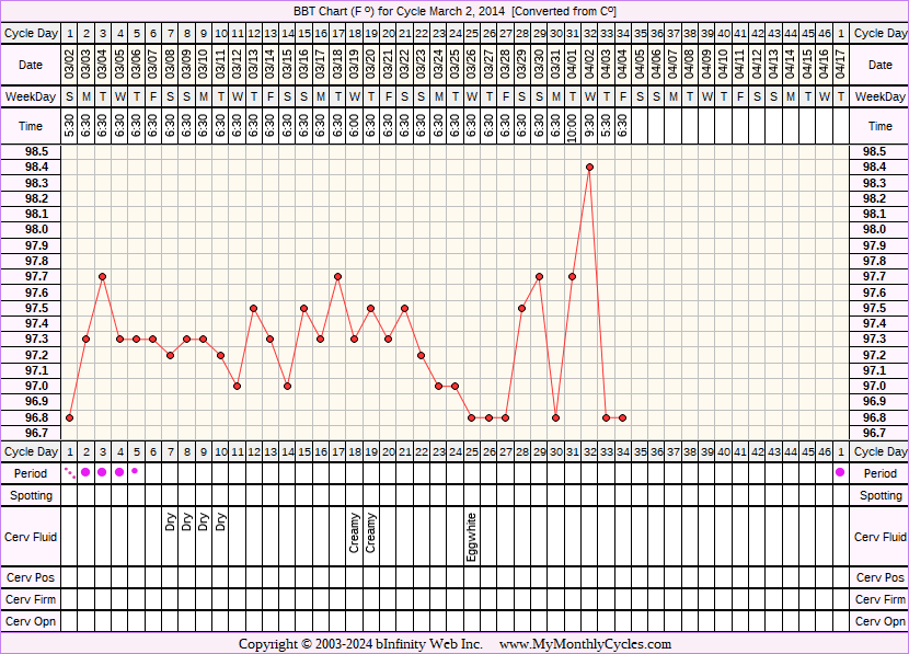 Disclaimer: You are viewing a chart shared by a MyMonthlyCycles member. All data on this chart, including ovulation date, if shown, has been entered by this member. MyMonthlyCycles has not interpreted this chart.