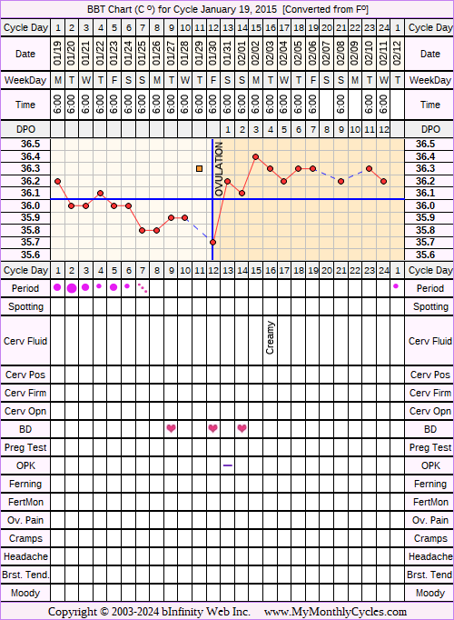 Disclaimer: You are viewing a chart shared by a MyMonthlyCycles member. All data on this chart, including ovulation date, if shown, has been entered by this member. MyMonthlyCycles has not interpreted this chart.