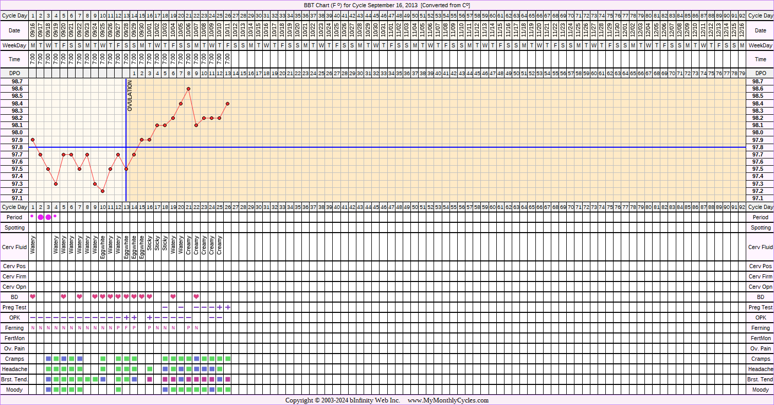 Disclaimer: You are viewing a chart shared by a MyMonthlyCycles member. All data on this chart, including ovulation date, if shown, has been entered by this member. MyMonthlyCycles has not interpreted this chart.