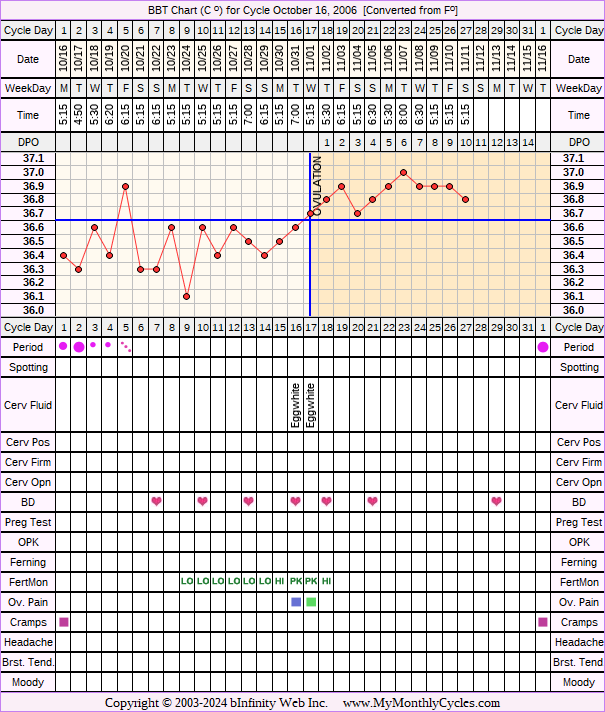 Disclaimer: You are viewing a chart shared by a MyMonthlyCycles member. All data on this chart, including ovulation date, if shown, has been entered by this member. MyMonthlyCycles has not interpreted this chart.