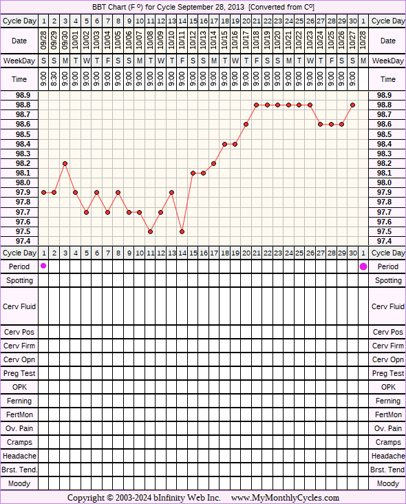 Disclaimer: You are viewing a chart shared by a MyMonthlyCycles member. All data on this chart, including ovulation date, if shown, has been entered by this member. MyMonthlyCycles has not interpreted this chart.