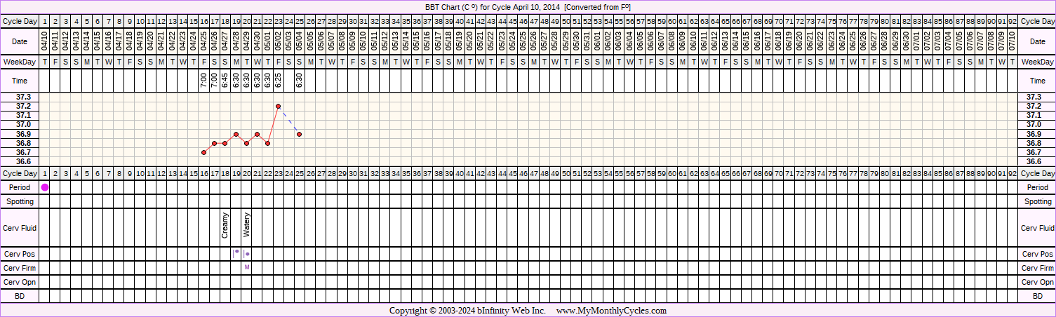 Disclaimer: You are viewing a chart shared by a MyMonthlyCycles member. All data on this chart, including ovulation date, if shown, has been entered by this member. MyMonthlyCycles has not interpreted this chart.