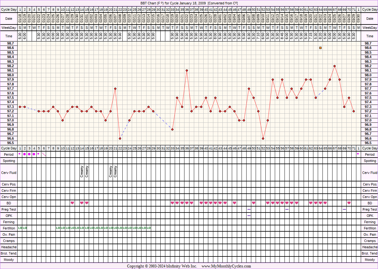Disclaimer: You are viewing a chart shared by a MyMonthlyCycles member. All data on this chart, including ovulation date, if shown, has been entered by this member. MyMonthlyCycles has not interpreted this chart.