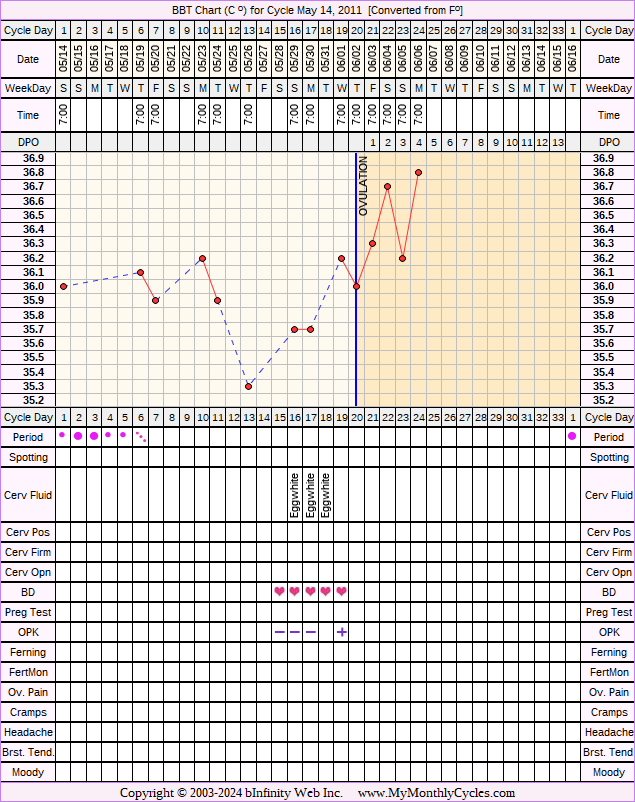 Disclaimer: You are viewing a chart shared by a MyMonthlyCycles member. All data on this chart, including ovulation date, if shown, has been entered by this member. MyMonthlyCycles has not interpreted this chart.