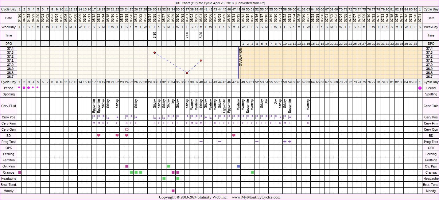 Disclaimer: You are viewing a chart shared by a MyMonthlyCycles member. All data on this chart, including ovulation date, if shown, has been entered by this member. MyMonthlyCycles has not interpreted this chart.