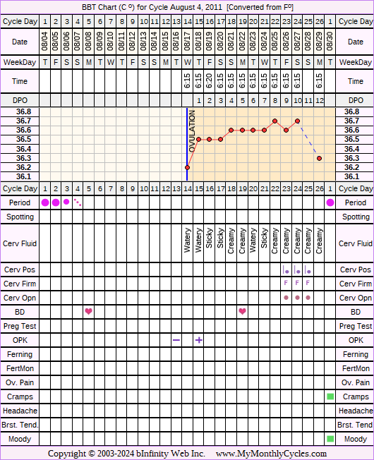 Disclaimer: You are viewing a chart shared by a MyMonthlyCycles member. All data on this chart, including ovulation date, if shown, has been entered by this member. MyMonthlyCycles has not interpreted this chart.