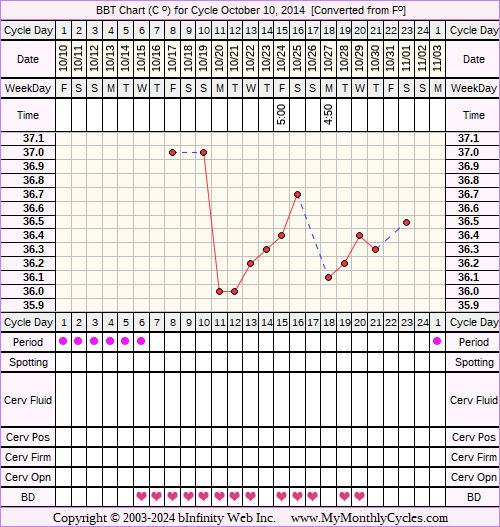 Disclaimer: You are viewing a chart shared by a MyMonthlyCycles member. All data on this chart, including ovulation date, if shown, has been entered by this member. MyMonthlyCycles has not interpreted this chart.