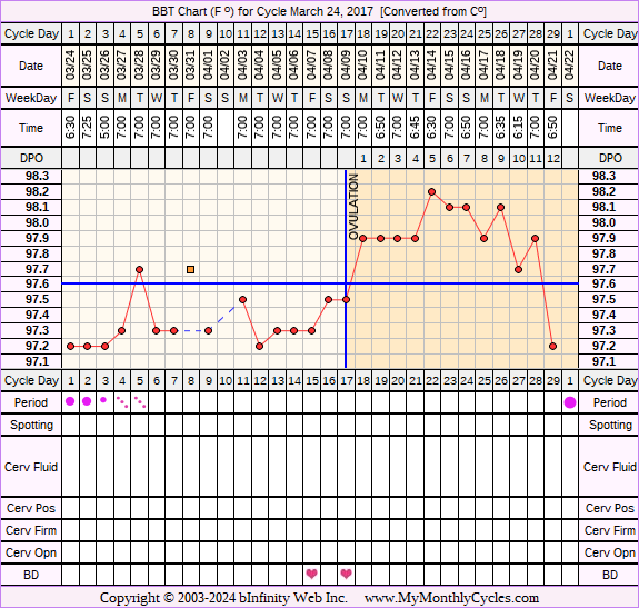 Disclaimer: You are viewing a chart shared by a MyMonthlyCycles member. All data on this chart, including ovulation date, if shown, has been entered by this member. MyMonthlyCycles has not interpreted this chart.