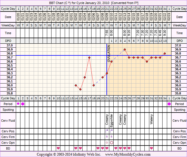 Disclaimer: You are viewing a chart shared by a MyMonthlyCycles member. All data on this chart, including ovulation date, if shown, has been entered by this member. MyMonthlyCycles has not interpreted this chart.