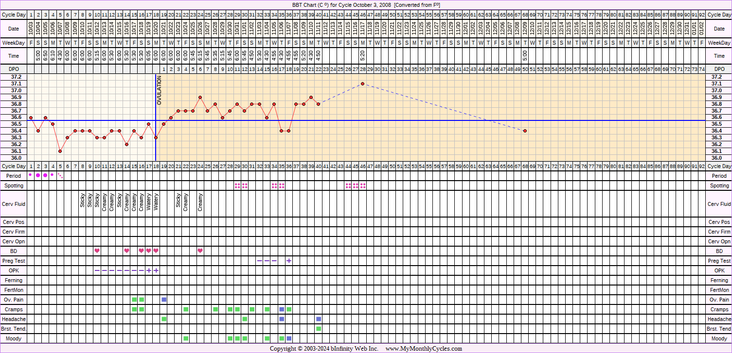 Disclaimer: You are viewing a chart shared by a MyMonthlyCycles member. All data on this chart, including ovulation date, if shown, has been entered by this member. MyMonthlyCycles has not interpreted this chart.