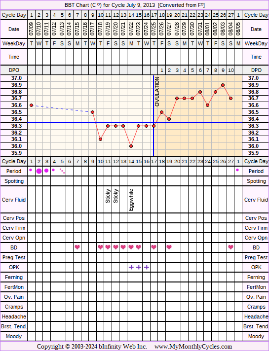Disclaimer: You are viewing a chart shared by a MyMonthlyCycles member. All data on this chart, including ovulation date, if shown, has been entered by this member. MyMonthlyCycles has not interpreted this chart.