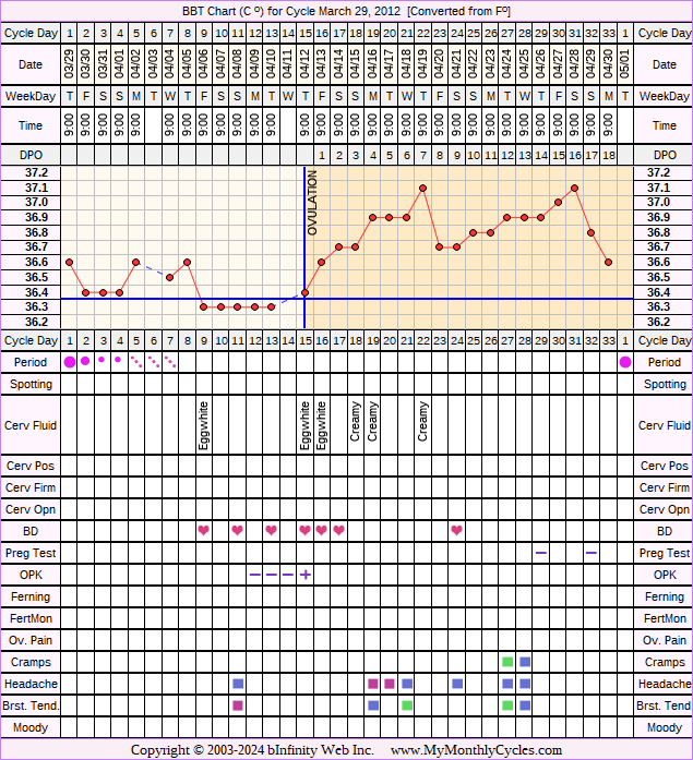 Disclaimer: You are viewing a chart shared by a MyMonthlyCycles member. All data on this chart, including ovulation date, if shown, has been entered by this member. MyMonthlyCycles has not interpreted this chart.
