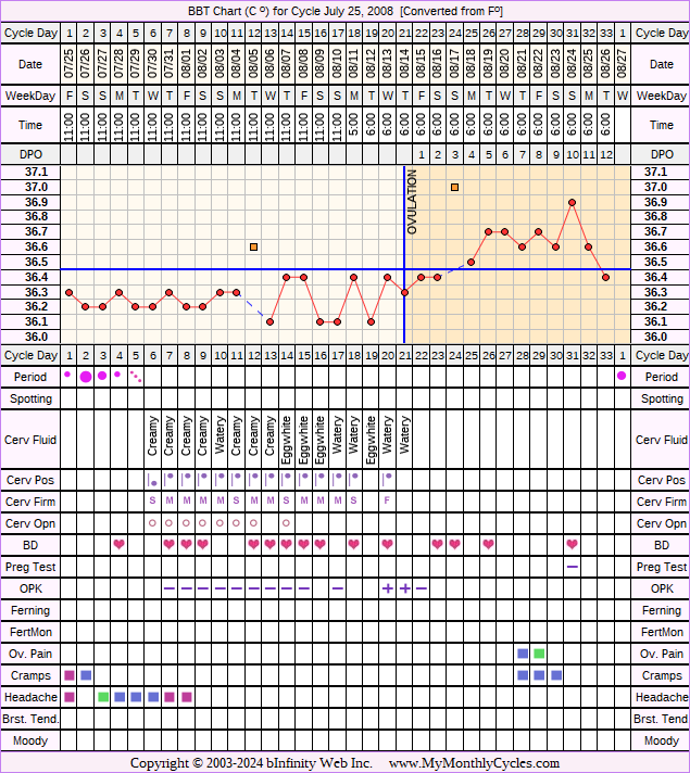 Member's BBT Chart for Jul 25, 2008
