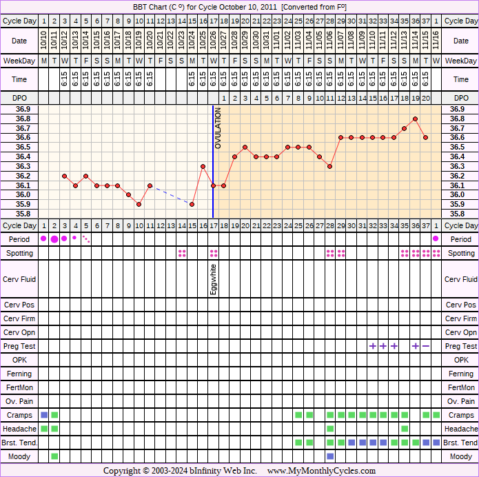 Disclaimer: You are viewing a chart shared by a MyMonthlyCycles member. All data on this chart, including ovulation date, if shown, has been entered by this member. MyMonthlyCycles has not interpreted this chart.