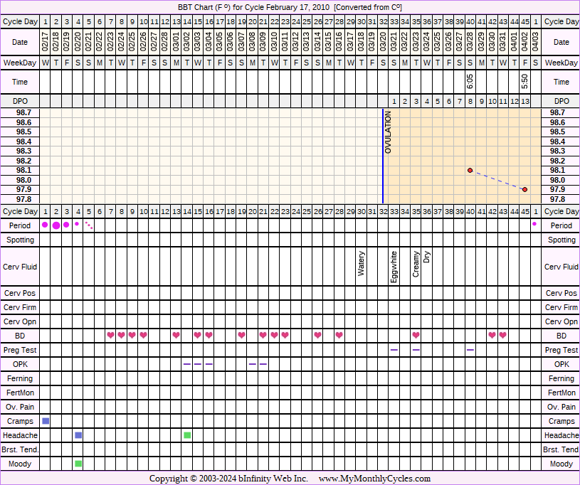 Disclaimer: You are viewing a chart shared by a MyMonthlyCycles member. All data on this chart, including ovulation date, if shown, has been entered by this member. MyMonthlyCycles has not interpreted this chart.