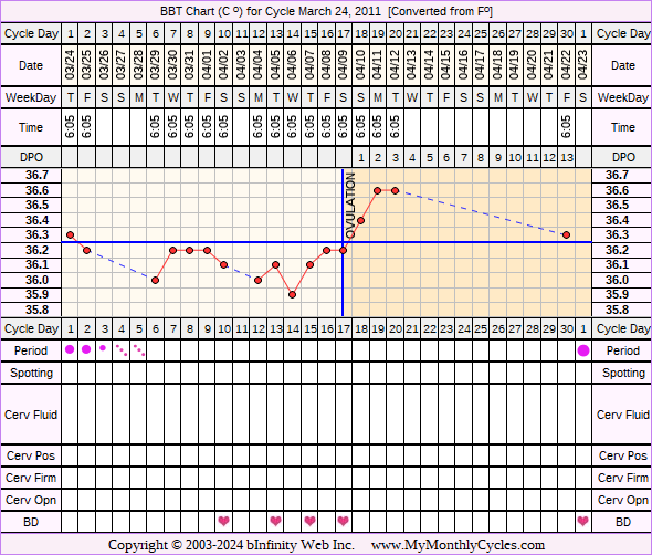 Disclaimer: You are viewing a chart shared by a MyMonthlyCycles member. All data on this chart, including ovulation date, if shown, has been entered by this member. MyMonthlyCycles has not interpreted this chart.