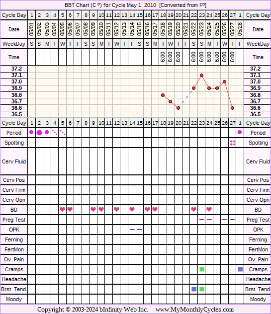 Disclaimer: You are viewing a chart shared by a MyMonthlyCycles member. All data on this chart, including ovulation date, if shown, has been entered by this member. MyMonthlyCycles has not interpreted this chart.