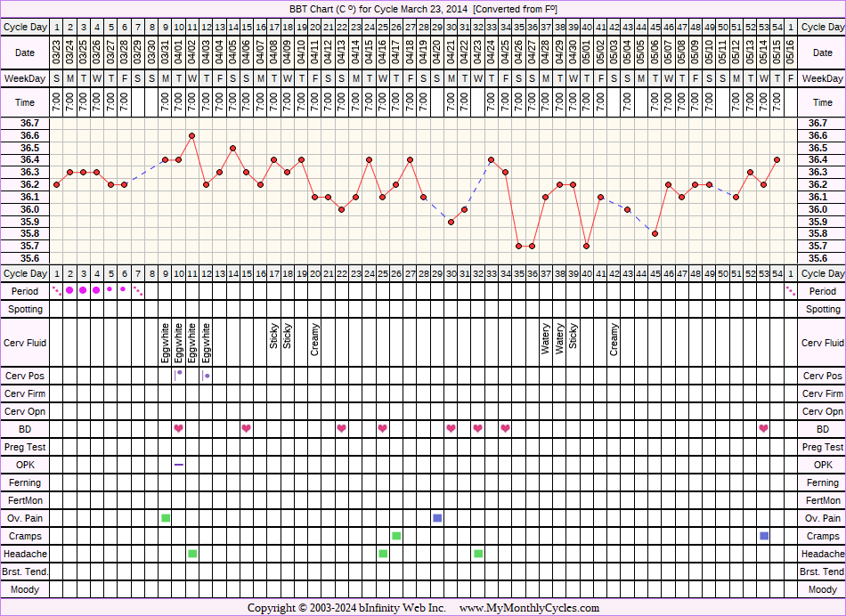 Disclaimer: You are viewing a chart shared by a MyMonthlyCycles member. All data on this chart, including ovulation date, if shown, has been entered by this member. MyMonthlyCycles has not interpreted this chart.