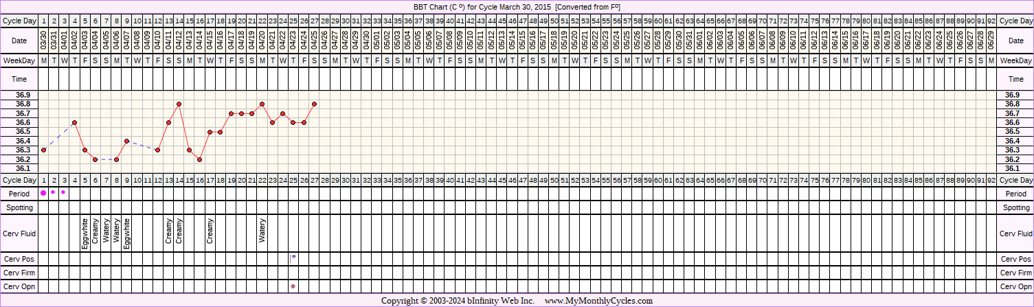 Disclaimer: You are viewing a chart shared by a MyMonthlyCycles member. All data on this chart, including ovulation date, if shown, has been entered by this member. MyMonthlyCycles has not interpreted this chart.