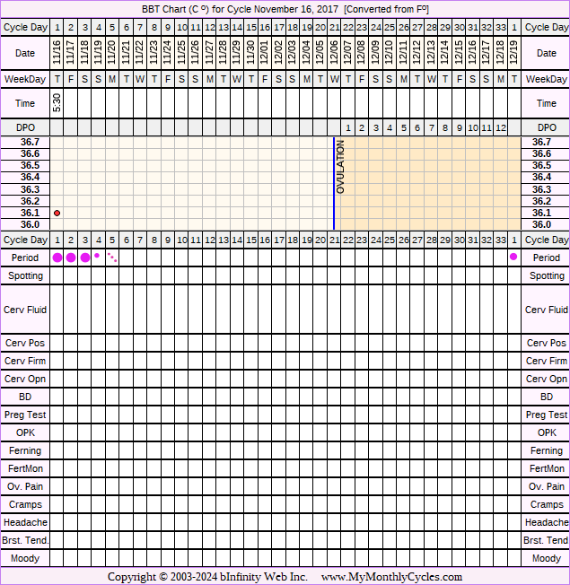 Disclaimer: You are viewing a chart shared by a MyMonthlyCycles member. All data on this chart, including ovulation date, if shown, has been entered by this member. MyMonthlyCycles has not interpreted this chart.