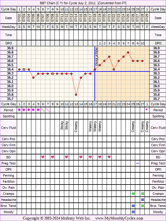 Disclaimer: You are viewing a chart shared by a MyMonthlyCycles member. All data on this chart, including ovulation date, if shown, has been entered by this member. MyMonthlyCycles has not interpreted this chart.