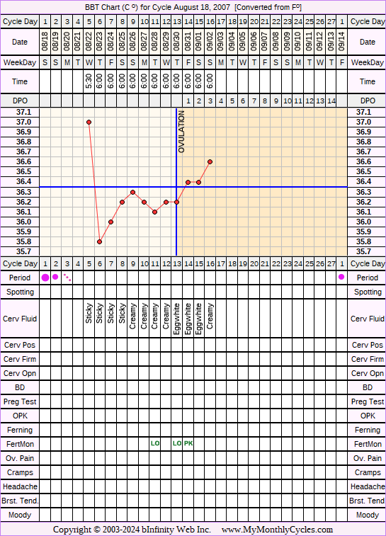 Disclaimer: You are viewing a chart shared by a MyMonthlyCycles member. All data on this chart, including ovulation date, if shown, has been entered by this member. MyMonthlyCycles has not interpreted this chart.