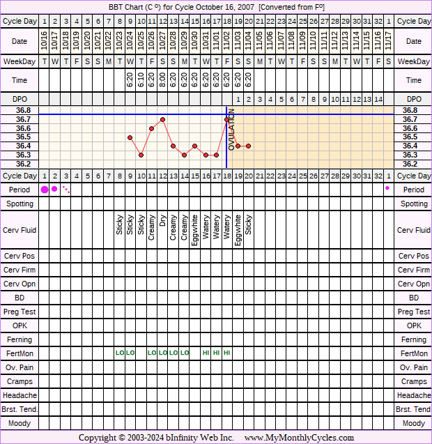 Disclaimer: You are viewing a chart shared by a MyMonthlyCycles member. All data on this chart, including ovulation date, if shown, has been entered by this member. MyMonthlyCycles has not interpreted this chart.