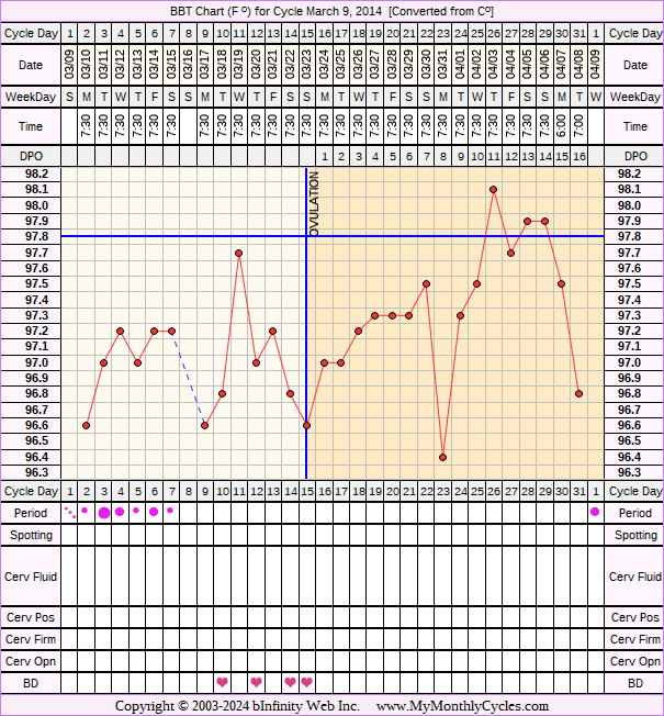 Disclaimer: You are viewing a chart shared by a MyMonthlyCycles member. All data on this chart, including ovulation date, if shown, has been entered by this member. MyMonthlyCycles has not interpreted this chart.